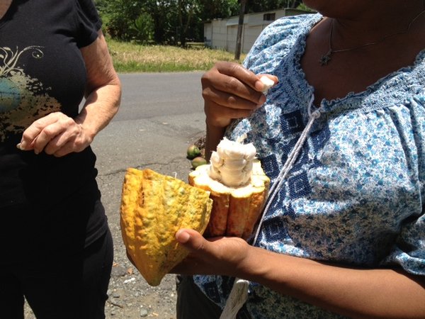 Our driver Rodrigo was something of a tour guide. He stopped by a fruit stand and the one Tico rider bought a cocoa fruit, the basis of chocolate. The farmer cut it open, and it didn’t look anything like chocolate it had rows of slimy white seeds and she offered us all one, I have to say I was thinking of saying “hell no” but I surprised even myself when I reached out and put one of the slimy white seeds in my mouth and not bad at all. It taste like a cumquat. Apparently, farmer’s dry out the seeds in the sun and it begins the process of making chocolate. The ride was long but not miserable. There are plenty of sites to take in as the road between the two destinations features lush jungle, countryside, waterfalls, and finally the beach! I have to say it was a good experience. So 4.5 stars for the Interbus. http://www.interbusonline.com