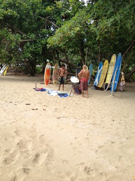 First things first, I rode my bike with a feeling of freedom; everything was extraordinarily green and beautiful in Puerto Viejo. The jungle meets the road and also glimpses of the blue ocean as I pedaled along. Paradise crossed my mind more than once. I stumbled upon a beach where the surfers hung. Ok straight women, bi-curious, and homosexual men, you don’t want to miss the sites here. These very cute Rasta boys, brown and kissed by the sun with blond locks lightened by the ocean from years of surfing are beautiful. Not to worry my lesbian sisters and straight brothers, there’s something for you too, the surfer women are just as hot and were equally as fast to charge those waves! The sites are plentiful.